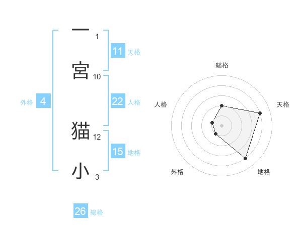 一宮 猫小さんを姓名の画数から五運を鑑定