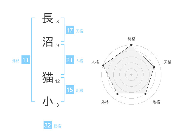 長沼 猫小さんの総格は32画の5点!