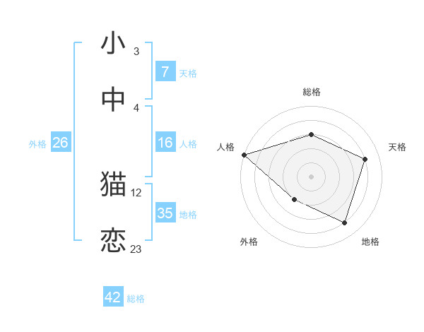 小中 猫恋さんの総格は42画の3点!