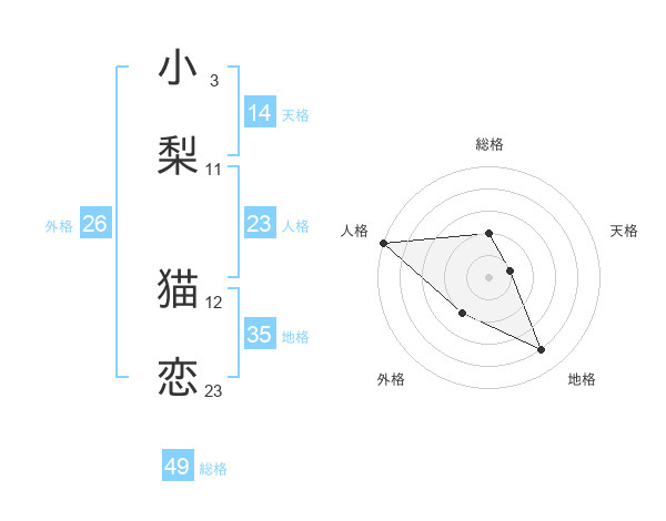 小梨 猫恋さんの総格は49画の2点!