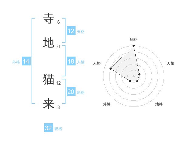 寺地 猫来さんを姓名の画数から五運を鑑定