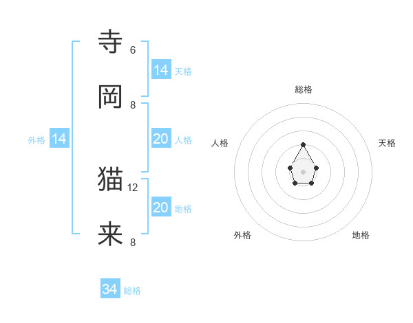 寺岡 猫来さんの総格は34画の2点!