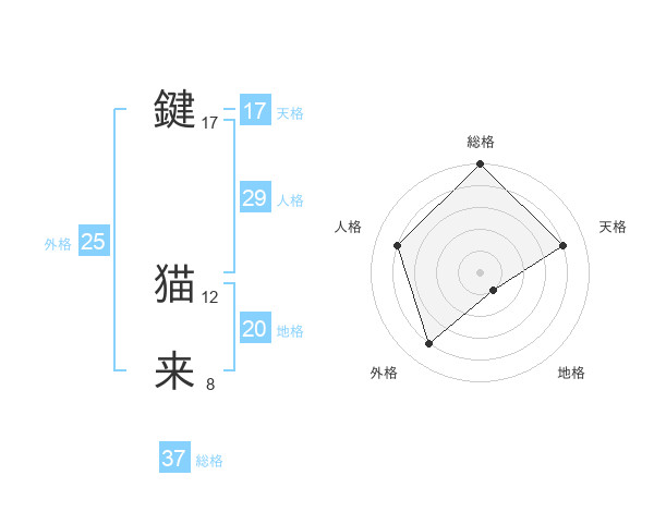 鍵 猫来さんの総格は37画の5点!