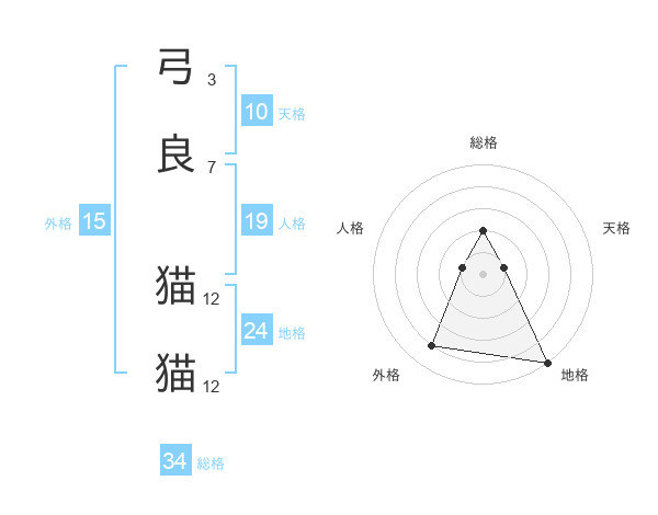 弓良 猫猫さんを姓名の画数から五運を鑑定