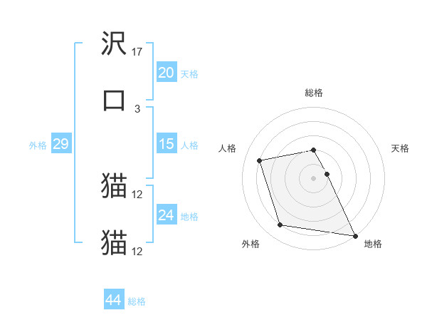 沢口 猫猫さんを姓名の画数から五運を鑑定