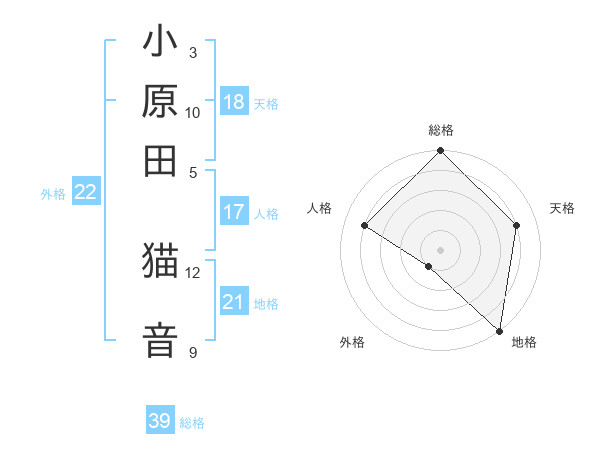 小原田 猫音さんを姓名の画数から五運を鑑定