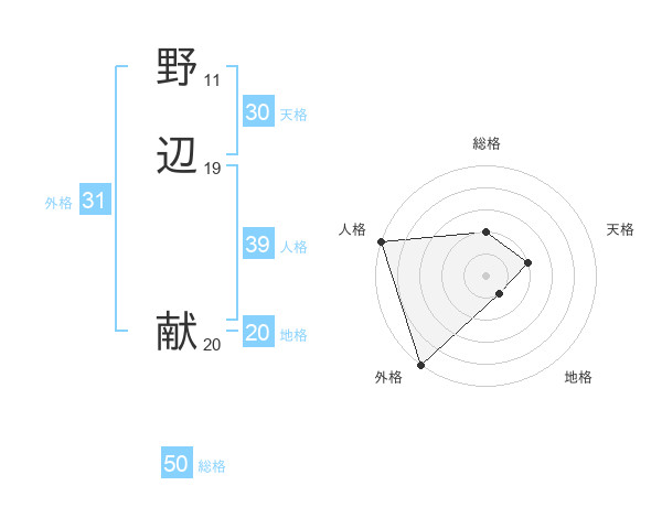 野辺 献さんの総格は50画の2点!