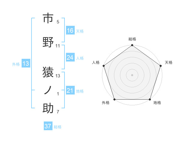 市野 猿ノ助さんを姓名の画数から五運を鑑定