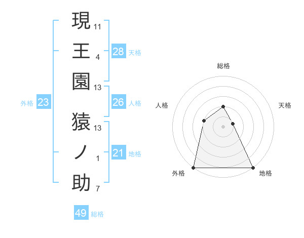 現王園 猿ノ助さんを姓名の画数から五運を鑑定