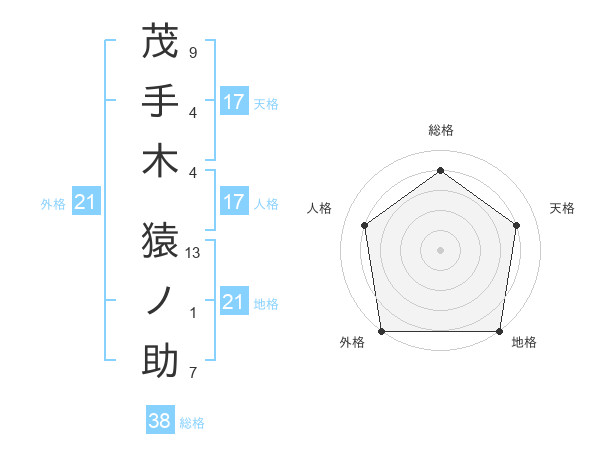茂手木 猿ノ助さんを姓名の画数から五運を鑑定