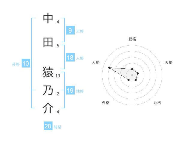 中田 猿乃介さんを姓名の画数から五運を鑑定