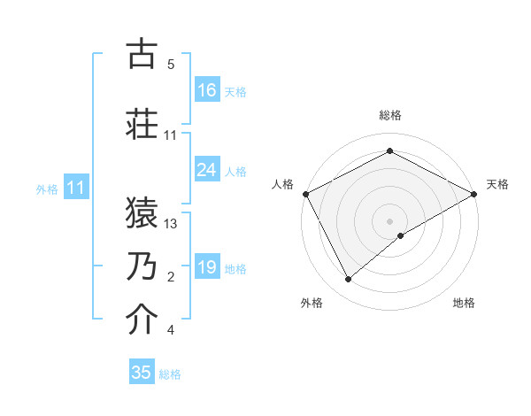 古荘 猿乃介さんを姓名の画数から五運を鑑定
