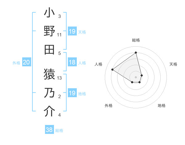 小野田 猿乃介さんを姓名の画数から五運を鑑定