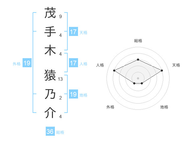 茂手木 猿乃介さんを姓名の画数から五運を鑑定