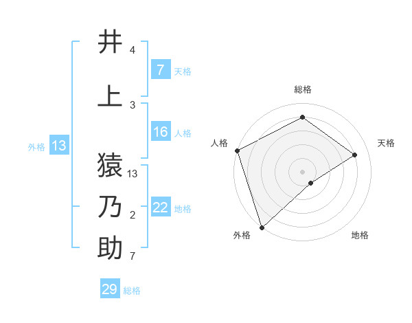 井上 猿乃助さんを姓名の画数から五運を鑑定