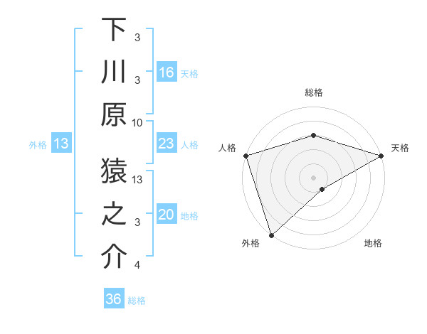 下川原 猿之介さんの外格は13画の5点!