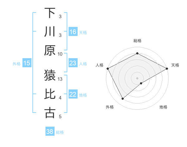 下川原 猿比古さんを姓名の画数から五運を鑑定