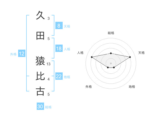 久田 猿比古さんを姓名の画数から五運を鑑定