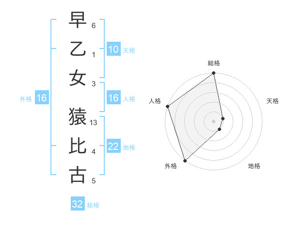 早乙女 猿比古さんを姓名の画数から五運を鑑定