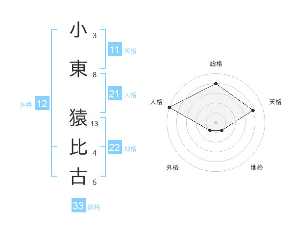 小東 猿比古さんを姓名の画数から五運を鑑定