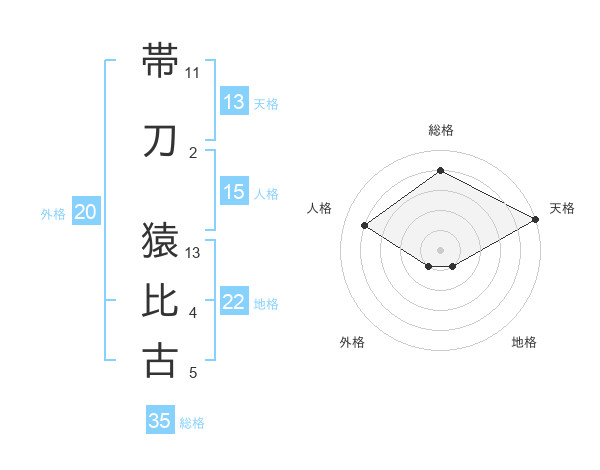 帯刀 猿比古さんを姓名の画数から五運を鑑定