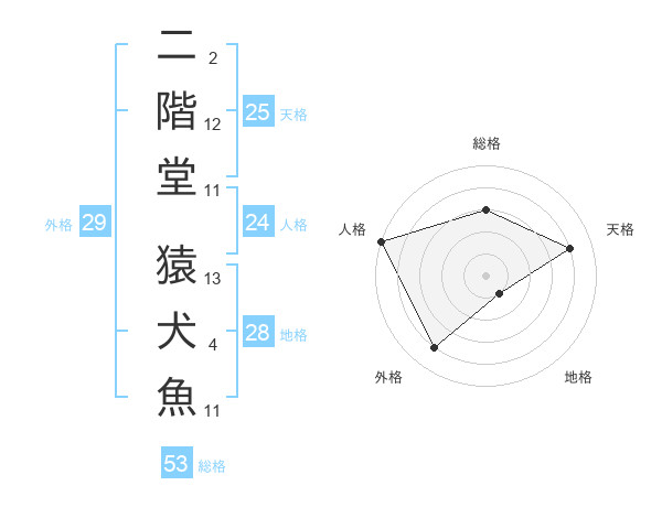 二階堂 猿犬魚さんを姓名の画数から五運を鑑定