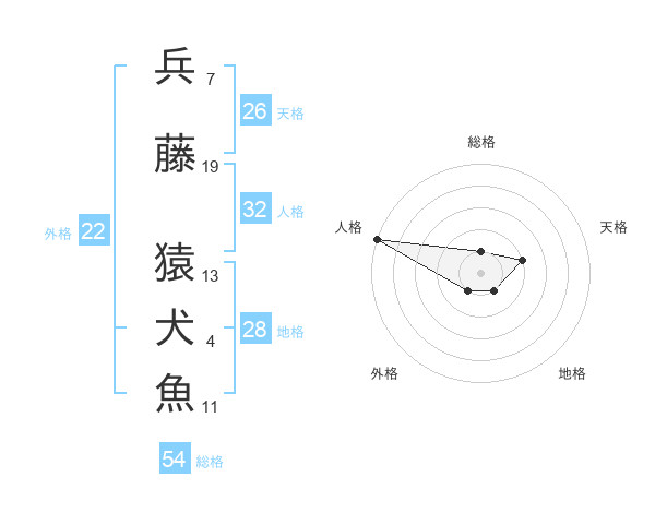 兵藤 猿犬魚さんを姓名の画数から五運を鑑定