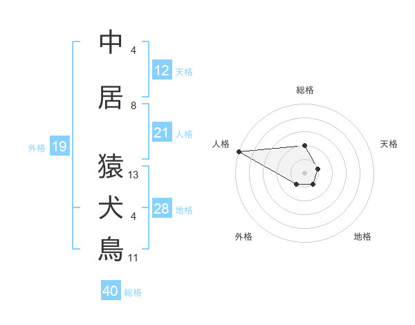 中居 猿犬鳥さんを姓名の画数から五運を鑑定