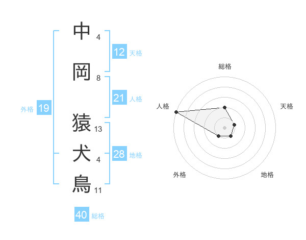 中岡 猿犬鳥さんを姓名の画数から五運を鑑定