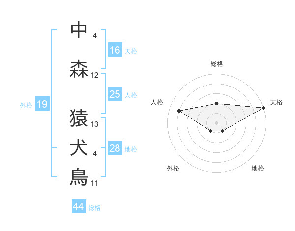 中森 猿犬鳥さんを姓名の画数から五運を鑑定