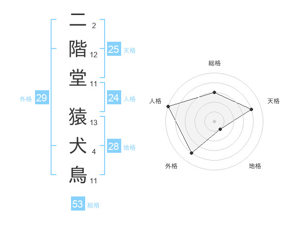 二階堂 猿犬鳥さんの総格は53画の3点!
