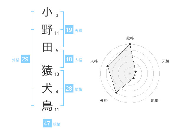 小野田 猿犬鳥さんを姓名の画数から五運を鑑定