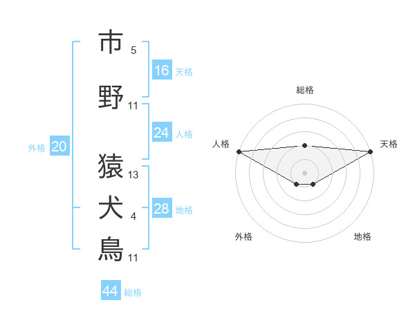 市野 猿犬鳥さんを姓名の画数から五運を鑑定