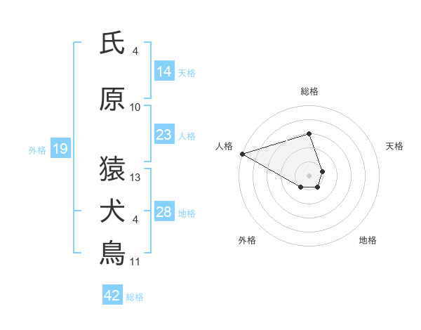 氏原 猿犬鳥さんを姓名の画数から五運を鑑定