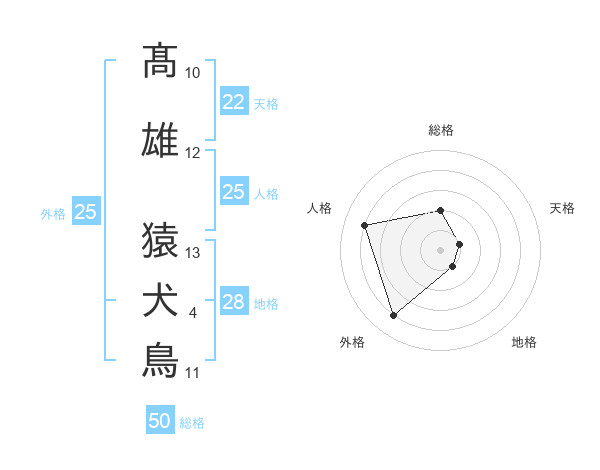 髙雄 猿犬鳥さんの総格は50画の2点!