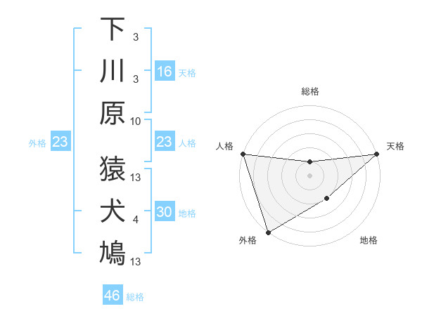 下川原 猿犬鳩さんの天格は16画の5点!