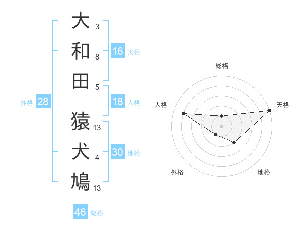 大和田 猿犬鳩さんを姓名の画数から五運を鑑定