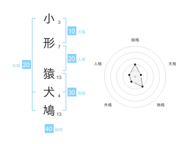 小形 猿犬鳩さんを姓名の画数から五運を鑑定