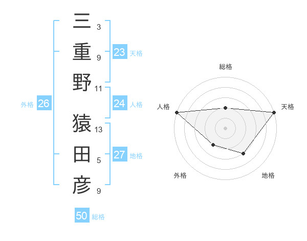 三重野 猿田彦さんを姓名の画数から五運を鑑定