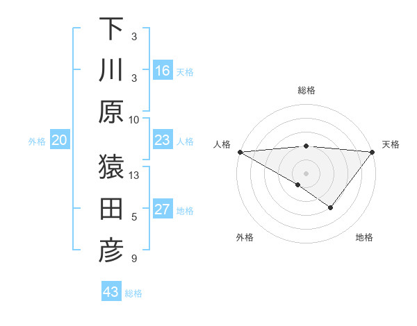 下川原 猿田彦さんを姓名の画数から五運を鑑定