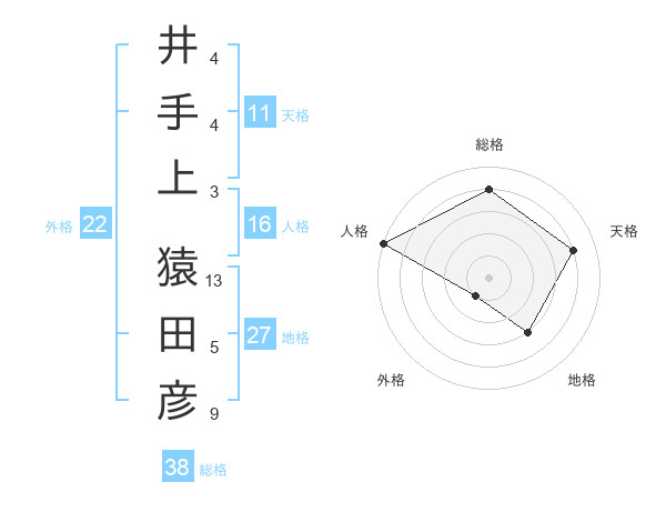 井手上 猿田彦さんを姓名の画数から五運を鑑定