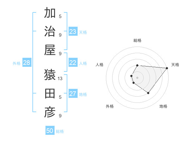 加治屋 猿田彦さんを姓名の画数から五運を鑑定