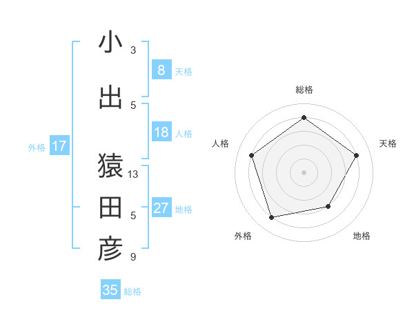 小出 猿田彦さんを姓名の画数から五運を鑑定