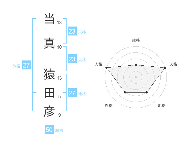 当真 猿田彦さんを姓名の画数から五運を鑑定