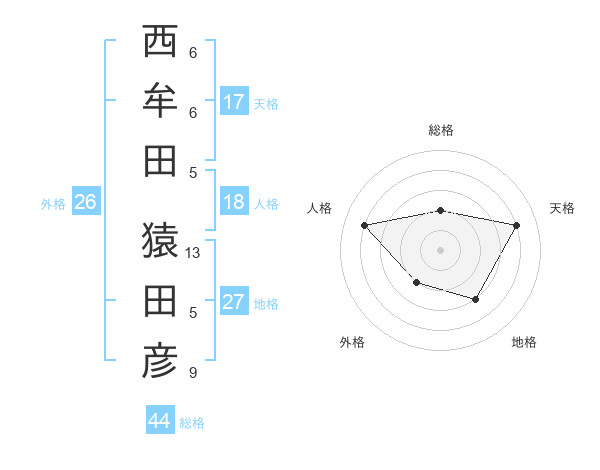 西牟田 猿田彦さんを姓名の画数から五運を鑑定