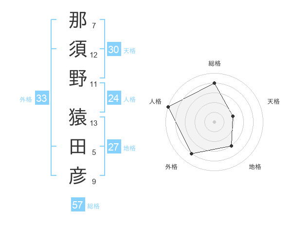 那須野 猿田彦さんを姓名の画数から五運を鑑定