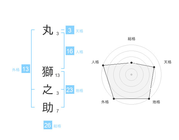 丸 獅之助さんを姓名の画数から五運を鑑定