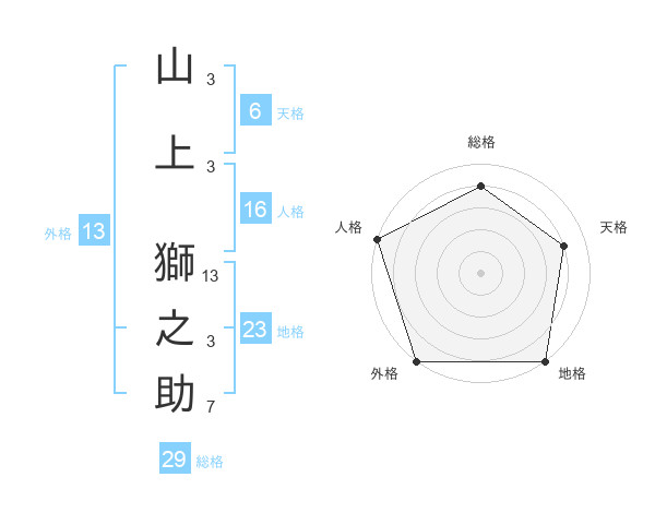 山上 獅之助さんを姓名の画数から五運を鑑定