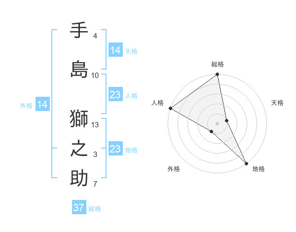手島 獅之助さんの総格は37画の5点!