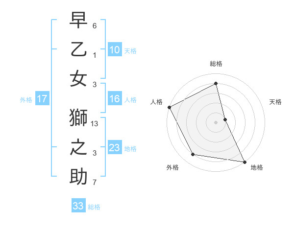 早乙女 獅之助さんの外格は17画の4点!